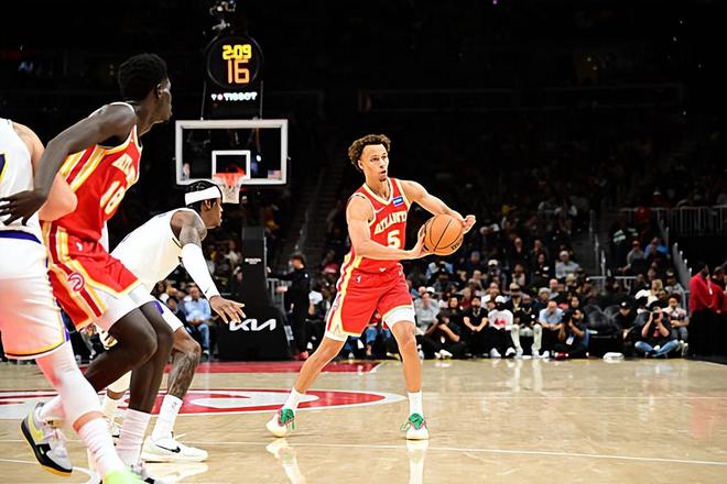 本場比賽中,老鷹的先發后場新星戴森-丹尼爾斯(Dyson Daniels)的表現算得上是令人刮目相看。丹尼爾斯全場出場36分03秒,投籃8中5,得到了10分8籃板13助攻1搶斷的準三雙數據,還有2次失誤和2次犯規,正負值也是達到了+16。值得一提的是,13次助攻也是丹尼爾斯NBA生涯的單場助攻數新高。丹尼爾斯在防守端還是保持了極高的水準,展現出了應有的防守能力。最關鍵的是,丹尼爾斯在進攻端也是起到了決定性的作用,他具備一定的突破能力,并且得到了一些分數,而且他在組織和串聯進攻方面的表現更是極其出色的,他也是成功起到了自己在這方面的效果??傮w來看,丹尼爾斯在本場比賽中的表現算得上是攻守兼備,這也是球隊能夠取得一場大勝的重要因素。