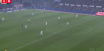 上半時補時階段,拜仁快速回應,站出來的正是前面剛失誤導致丟球的格納布里,拜仁后場快攻轉移右側,奧利斯插上接球突入禁區橫傳中路,格納布里接球直接往前一挑人球分過擺脫防守,小角度大力抽射,皮球直入球門近端死角,拜仁半場結束前1:1扳平比分。易邊再戰拜仁繼續加強進攻,第53分鐘,格納布里插上禁區左側獲得小角度不錯的機會,只是他凌空掃射踢呲了錯失良機。2分鐘后科隆這邊反擊也制造閃擊,只是卡明斯基無法擺脫韓國球員金玟哉,最后被金玟哉將球斷走。