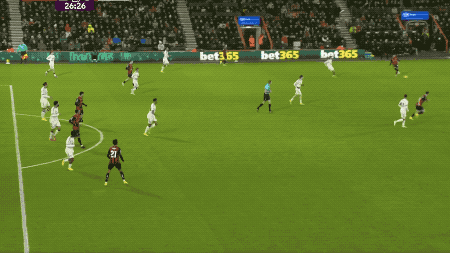 第26分鐘,面對伯恩茅斯的長傳,范迪克出現了一腳踢空的失誤,斯科特傳中,埃瓦尼爾森包抄將球打進,這也是兩隊本場比賽的第3次射門。